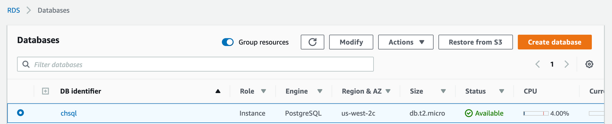 For this example, we'll go from PostgreSQL 9.4.20 to 9.5.18. After you've restored your database from a snapshot, you should see it in the list of available databases: