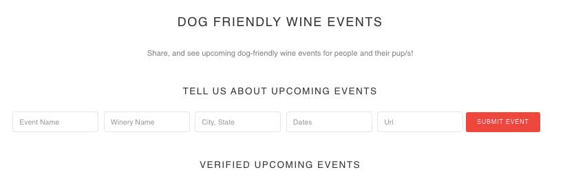 Do you have an upcoming event that you’d like to promote to our dog-wine loving community? We’d love to help you and it’s FREE! Here’s how to submit your event information: