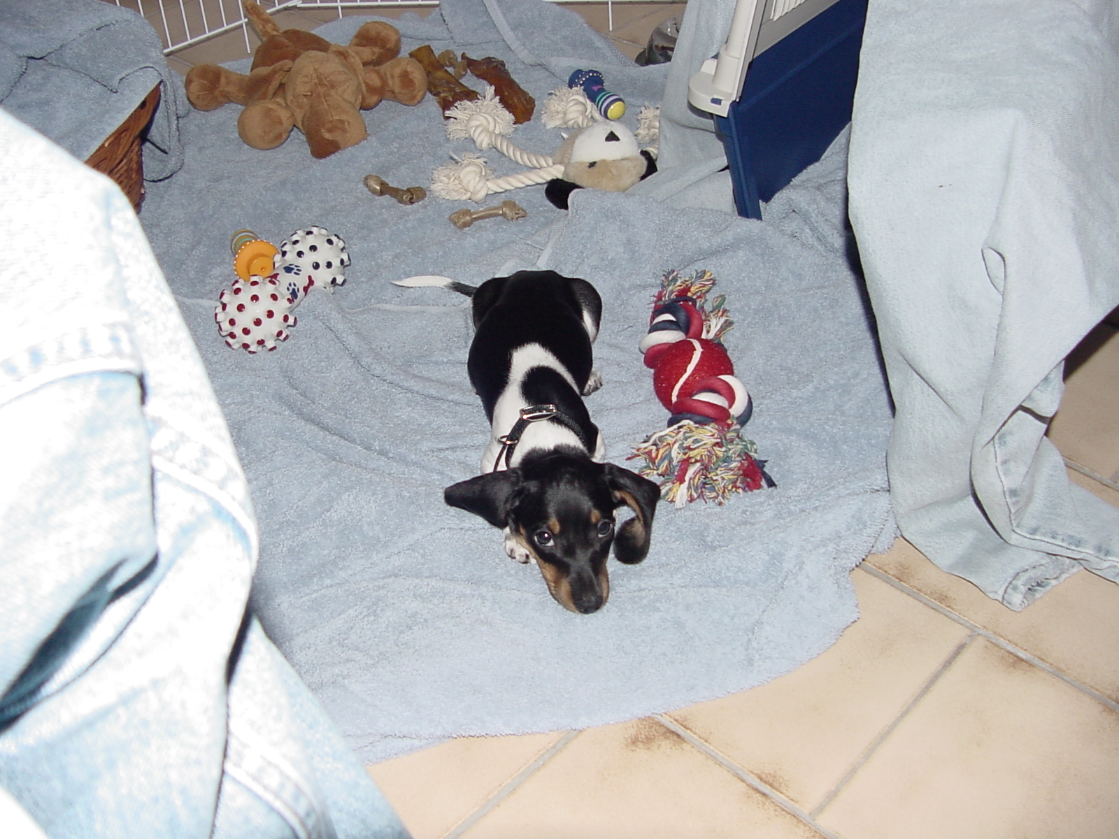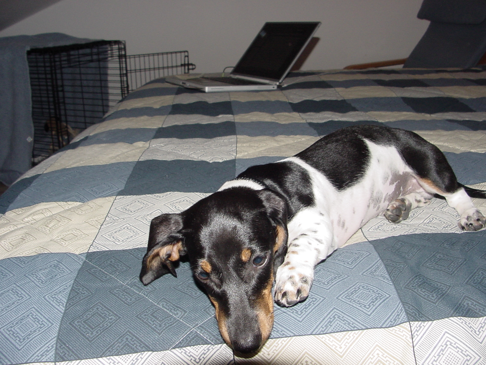 Bentley was born in a family farmhouse in the town of Giebelstadt, Germany in June of 2003. The farmhouse is/was part of the Dashing Dackels compound, a Kennel/Breeder of Dachshunds (and Collies at that time). The word "Dackel" is German for Dachshund. In July/August, I decided to make the 1 hour and 30 minute trip to Giebelstadt to visit the breeder and meet their pups.