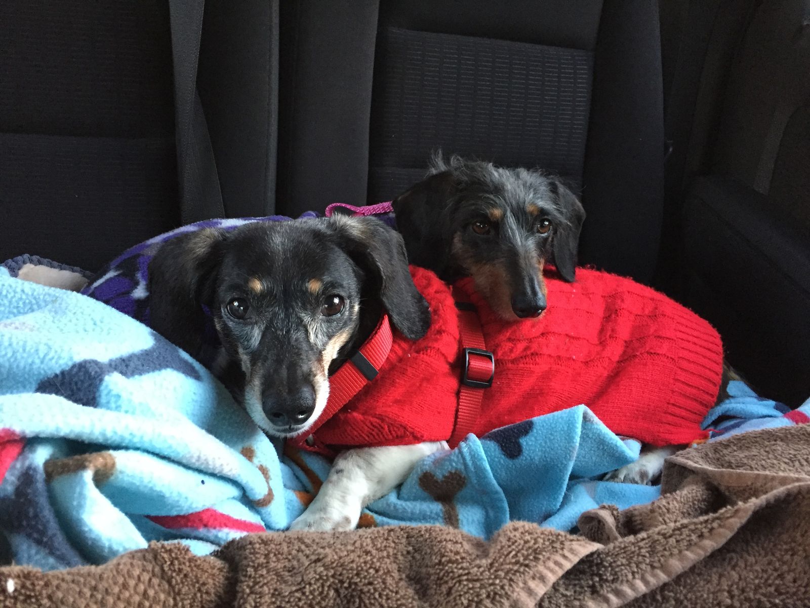 Peggy began searching for a dachshund in 2013. She would eventually find Greta's profile listed on All American Dachshund Rescue, and apply to adopt her. At first, AADR selected another applicant over Peggy. But our luck changed, when AADR contacted Peggy to say that the other applicant had adopted another dog from the pound, and had withdrawn their application. Peggy, Bentley and I drove from Northern Virginia to Tennessee on June 21, 2014 to pick up Greta from her foster mom. Bentley was surprised to learn that we were picking up another dachshund, but they got along well from the start with no issues, although Greta quickly established that she was in charge. And the adventure began!